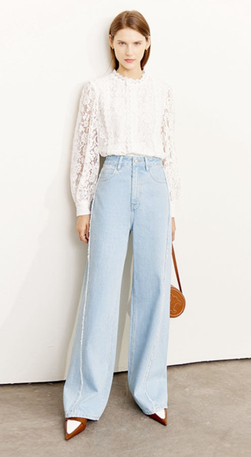 Women’s Straight Jeans Autumn Loose Cotton Denim Blue Patchwork Wide Leg Pants Streetwear Women Pants 12270322