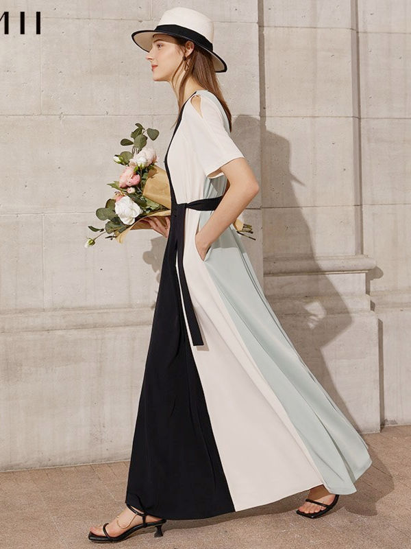 Women’s Summer Dress Temperament Patchwork Vneck Aline Ankel-Length Causal Dress For Women 12180014