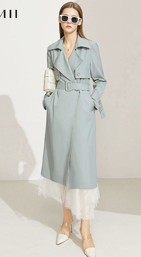 Women’s Trench Coat Office Lady Fashion Lapel Double Breasted Jackets Female Sashes Windbreaker Coat 12140720